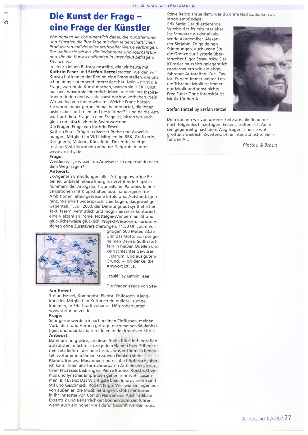Plettau & Braun porträtieren Kathrin Feser und Stefan Hetzel in: DER KESSENER (Würzburger Stadtmagazin), Juni 2007